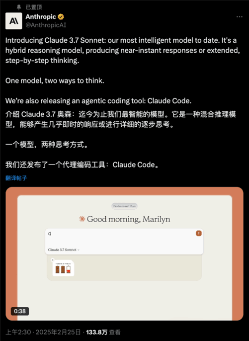 AI公司推出新款混合推理模型Claude3.7Sonnet